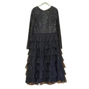 Mac Duggal NEW Style 26299 Size 6 Black Long Sleeve Ruffle Tiered Midi Dress NWT