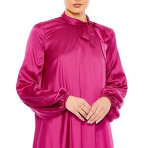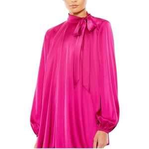 Mac Duggal NEW Size 8 Magenta Long Sleeve Satin Trapeze Cocktail Mini Dress Style 55968
