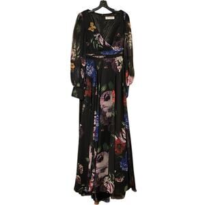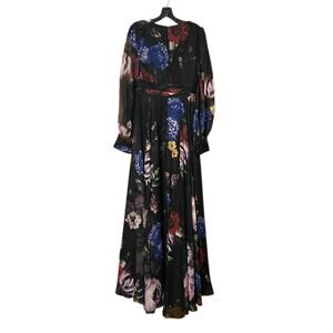 Mac Duggal NEW Size 6 Style 67872 Black Floral Chiffon Bishop Sleeve Floral Print Dress