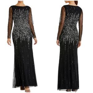 Mac Duggal NWOT Black High Neck Sequin Embellished Long Sleeve Gown
