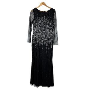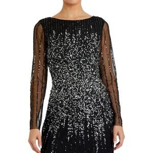 Mac Duggal NWOT Black High Neck Sequin Embellished Long Sleeve Gown Size 10
