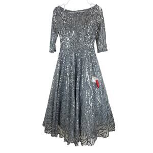 Mac Duggal NWOT Sequin Embellished Midi Dress Size 2 Platinum Silver