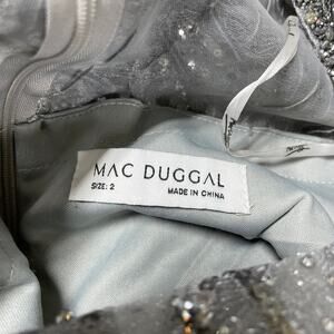 Mac Duggal NWOT Sequin Embellished Midi Dress Size 2 Platinum Silver Bead Tulle
