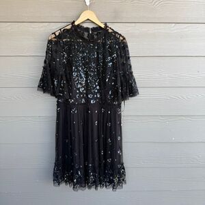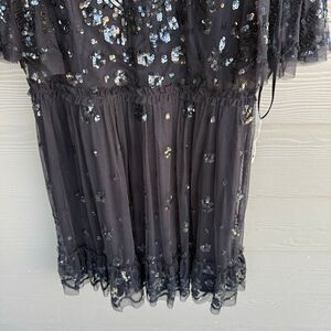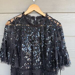 Partially lined bodice; fully lined skirt; sheer unlined sleeves