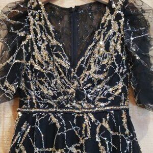 Mac Duggal NWT Black Gold Sequin Puff Sleeve Maxi Gown Dress Size 8 #204…