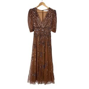 Mac Duggal NWT Cinnamon Puff Quarter Length Sleeve V-Neck Dress Embellished