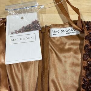 Mac Duggal NWT Cinnamon Puff Quarter Length Sleeve V-Neck Dress Embellished Sz 2