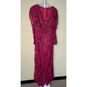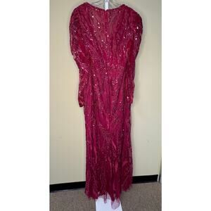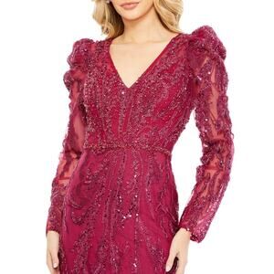Mac Duggal NWT Embellished Puff Sleeve V-Neck Gown in Burgundy Size 14