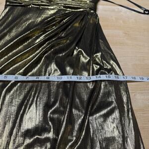 Mac Duggal NWT Gold Metallic Criss Cross Halter Neck Midi Dress Size 2 High Slit