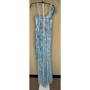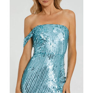 Mac Duggal NWT One Shoulder Mesh Sequin Gown w/Slit in Aqua Size 2