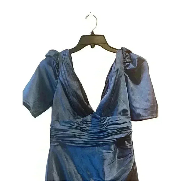 Mac Duggal NWT Ruched Satin Puff Sleeve Cocktail Mini Dress Ocean blue 4