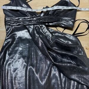 Mac Duggal NWT Silver Metallic Stretch Jersey Dress Cutout High Slit Size 2
