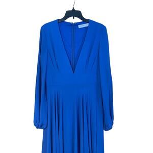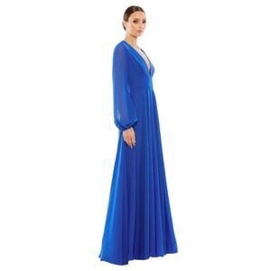 Mac Duggal NWT Size 10 55682 Royal Blue V-Neck Illusion Long Sleeve Chiffon Gown