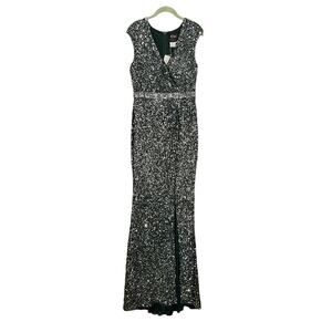Mac Duggal NWT Size 8 Style 5489 Forest Green Cap Sleeve Sequined High Slit Gown