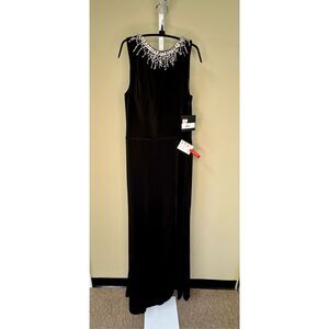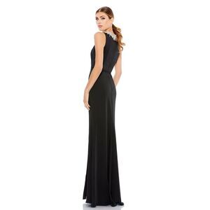Mac Duggal NWT Sleeveless Rhinestone Collar Column Gown in Black Size 12