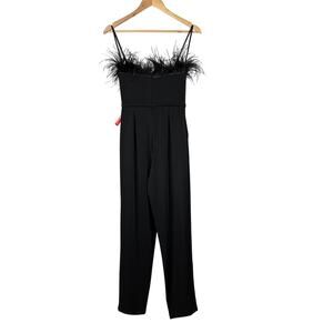 Mac Duggal NWT Strapless Crepe Formal Jumpsuit Feather Trim Size 2 Black Pockets