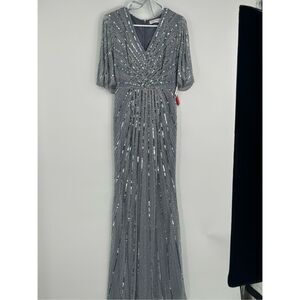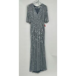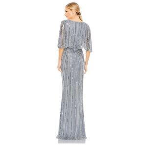 Mac Duggal NWT size 4 slate blue Sequined V Neck Cape Sleeve Gown style 93583 fo