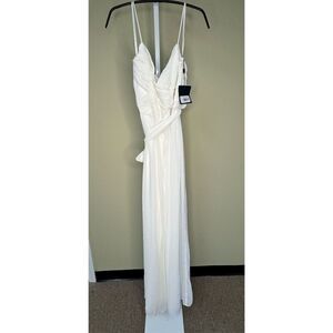 Mac Duggal NWT Flowy Faux Wrap Jumpsuit in White Size M