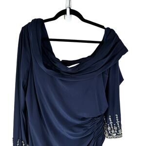 Mac Duggal NewWomen's One Shoulder Long Sleeve Jersey Gown Midnight Size 16