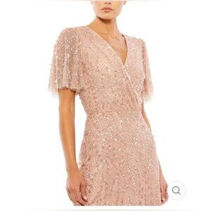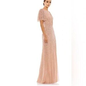 Mac Duggal Nude Blush Flutter Sleeve Sequin Evening Gown Dress