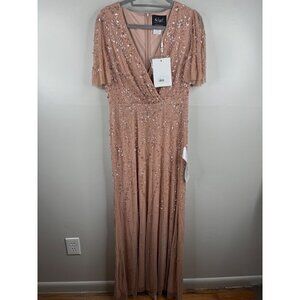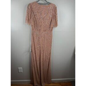 Mac Duggal Nude Blush Flutter Sleeve Sequin Evening Gown Dress Size 10 NWT 35109