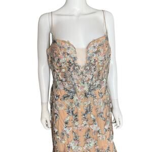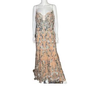 Mac Duggal Nude Embroidered Spaghetti Strap Trumpet Gown A79313 Women’s Sz 14