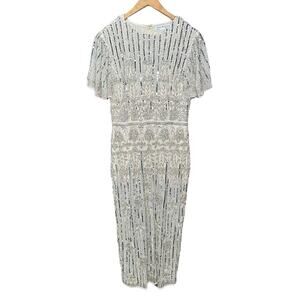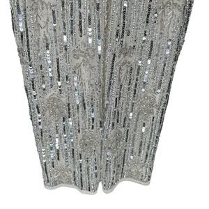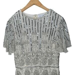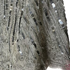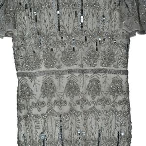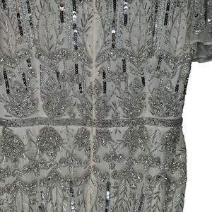 Mac Duggal Nude Silver Embellished Flutter Sleeve High Neck Dress 6