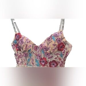 Mac Duggal Nude/Multi Embellished Floral Detail A Line Gown