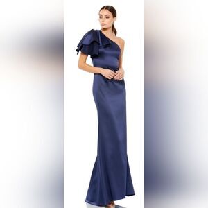 Mac Duggal ONE SHOULDER FLUTTER SLEEVE GOWN NWT size 16 Blue (26521)
