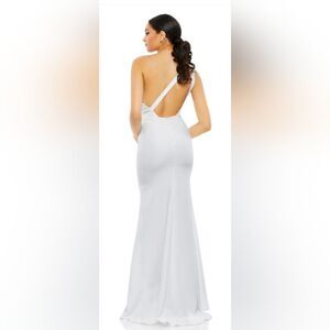 Mac Duggal ONE SHOULDER JERSEY MERMAID GOWN NWT Size 8 White (26266)