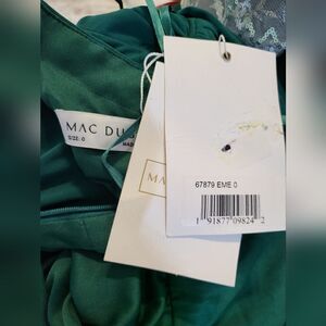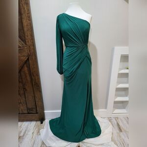 Mac Duggal ONE SHOULDER PUFF SLEEVE FAUX WRAP GOWN NWT size 0 Green 67879