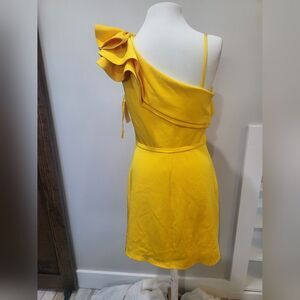 Mac Duggal ONE SHOULDER RUFFLE MINI DRESS NWOT size 12 Lemon Yellow (55286)