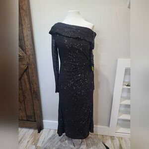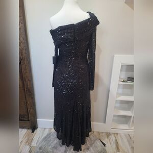 Mac Duggal ONE SHOULDER SEQUIN LONG SLEEVE MIDI DRESS NWT size 8 black (26551)