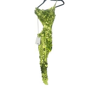 Mac Duggal One Shoulder Asymmetrical Sequined Cut-Out Dress Apple Green SZ 2 NWT