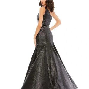 Mac Duggal One Shoulder Metallic Ruffled Evening Gown Dress