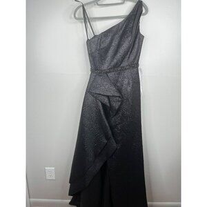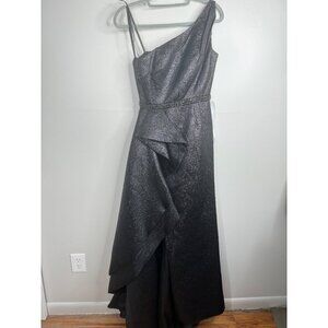 Mac Duggal One Shoulder Black Metallic Ruffled Evening Gown Dress Size 0