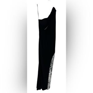 Mac Duggal One Shoulder Cut Out Deatil Mirror Sequin High Slit Gown Size 8 B390
