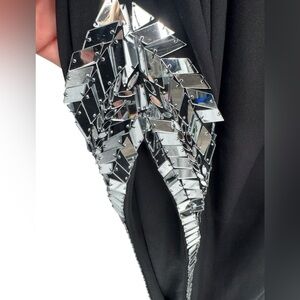 Front/back cut-out; High slit; Mirror Sequin detail; Cinched waist-line