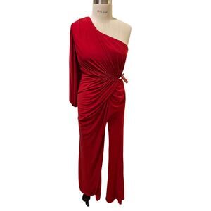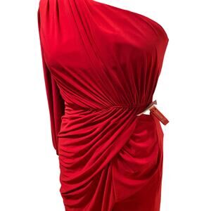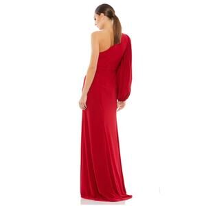 Mac Duggal One Shoulder Faux Wrap Gown Red Dress 10 Puff Sleeve