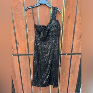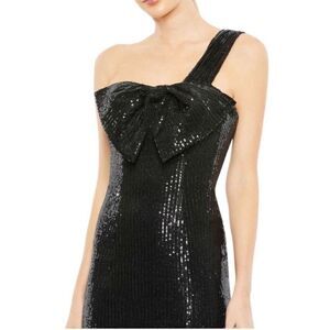 Mac Duggal One Shoulder Front Bow Cocktail Dress Evening Slit Midi 11286