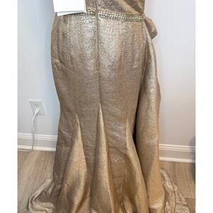 Mac Duggal Oyster One Shoulder Metallic Ruffled Evening Gown 66975 Size 8 New