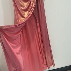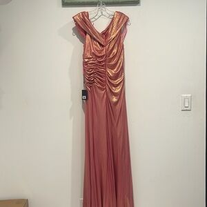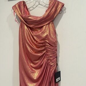 Theme prom wedding guest all season spring summer fall garden party wedding guest homecoming elegant gown, Maxi, rouge, draping, traumatic metallic shimmer, shine sparkle, pink formal maxi long dramatic, elegant, timeless, chic award, show red carpet affair, movie premiere