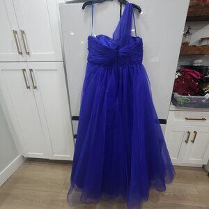 Mac Duggal One-Shoulder Royal Blue Gown Size 14 Tulle & Satin Layers Formal Even