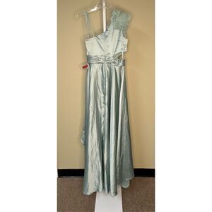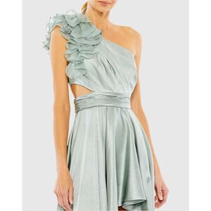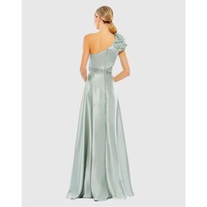Mac Duggal One-Shoulder Ruffle Maxi Dress in Light Green