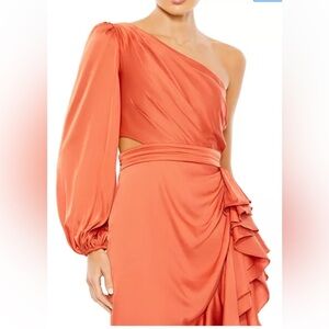 Mac Duggal One-Shoulder Ruffled Orange Dress