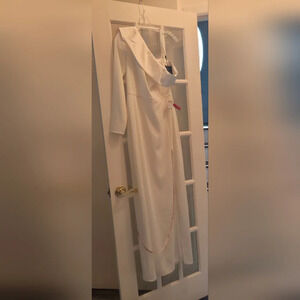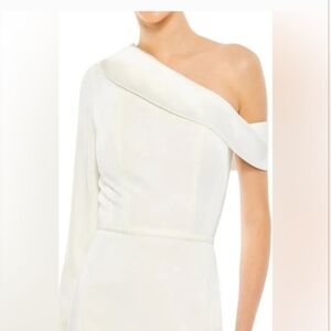 Elegant one-shoulder dress by Mac Duggal. Features a sleek white design. Perfect for formal occasions. Great for your wedding, prom, homecoming, mother of the bride or groom, Quinceanera, cruise, formal dinner, bridal shower, bachelorette party, cocktail event. NWT!! NEVER WORN!! Accepting reasonable offers!!