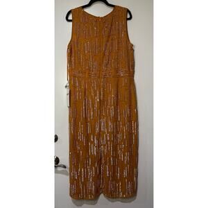 Mac Duggal Orange Abstract Beaded Sleeveless Midi Sheath Dress Size 14 NWT 70264