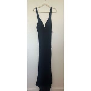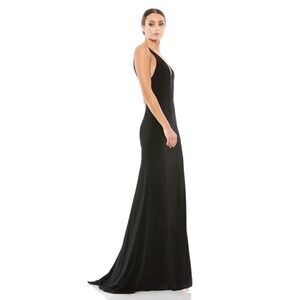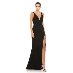 Mac Duggal PLUNGE NECK HIGH SLIT GOWN in Black NEW