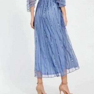 Mac Duggal Periwinkle Blue Beaded Kimono Sleeve A Line Midi Dress