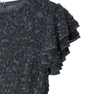 Mac Duggal Petite Embellished Cap Sleeve Fully Beaded Gown Black Women 2 NWOT
